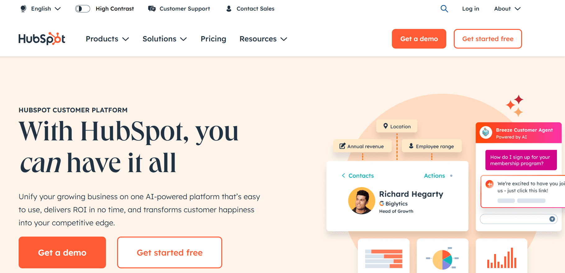 We found that HubSpot is great for large companies as it offers a seamless connection between email marketing and sales. Emails can be personalized based on CRM data. There’s a drag-and-drop automation builder for trigger-based email sequences. While the free plan has a 2,000 monthly email limit, paid plans unlock advanced automation and AI-powered insights for enterprise users.