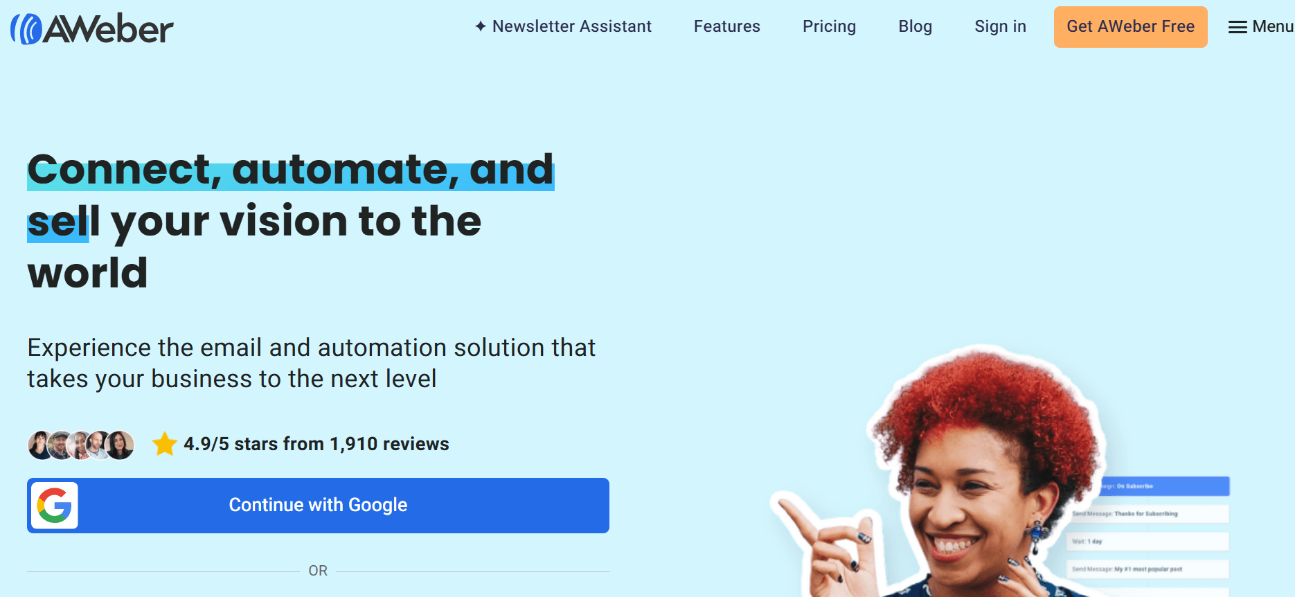 The drag-and-drop editor features handy prompts for customizing your design. The icing on the cake is a Canva integration. Canva is a fantastic drag-and-drop graphic design app. It helps take the visual quality of your designs to a new level. If you want things even easier, AWeber also offers an Auto Newsletter feature. This automatically creates and sends newsletters from blogs, vlogs or podcasts. Other automation tools include simple campaign sequences and dynamic content for personalized messages. You can also extend functionality with 750+ third-party integrations.