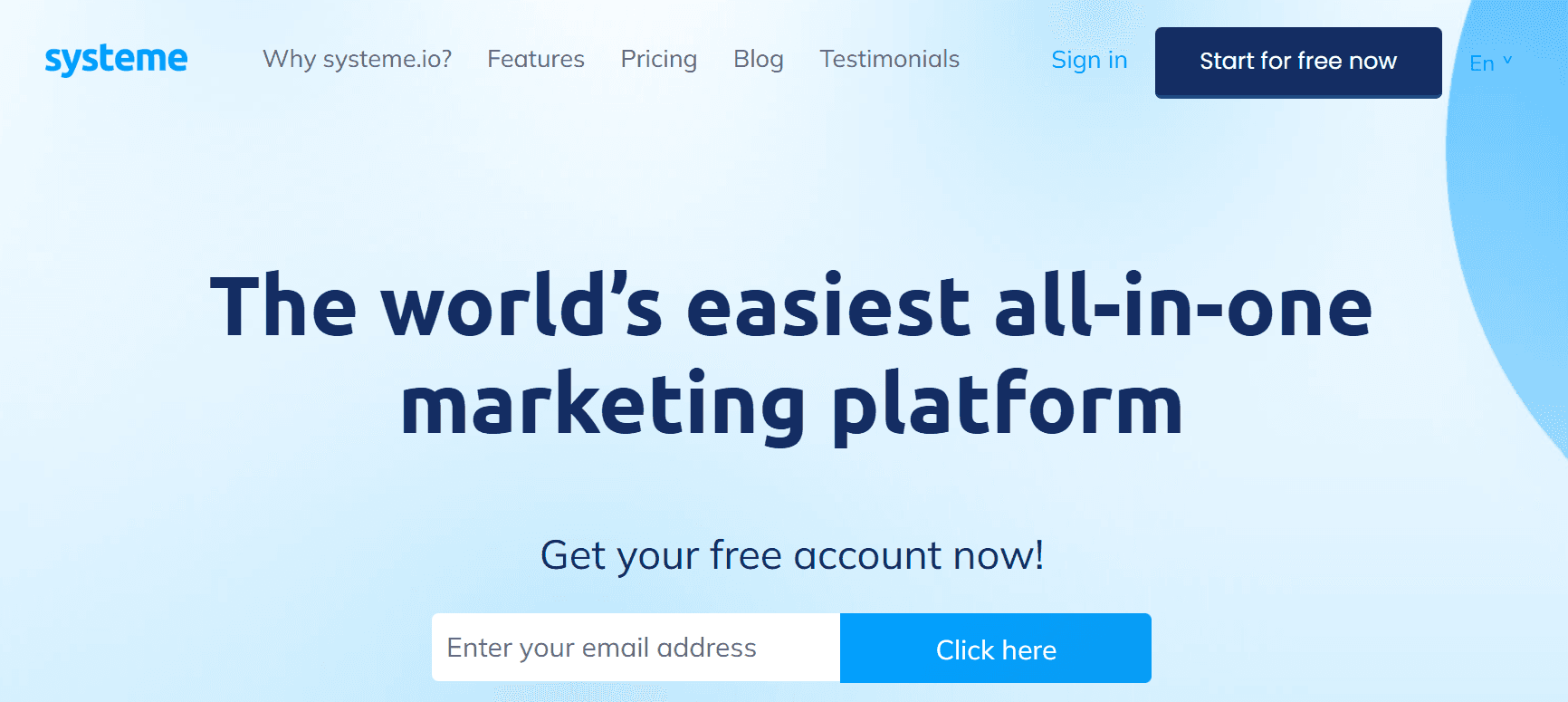 Systeme has a free plan with unlimited emails and up to three sales funnels. For more, you’ll need to upgrade to its paid plans, and for unlimited sales funnels, you‘ll need the highest plan, which comes at a costly $97 a month. Another significant drawback is that it only has two elementary email templates, so you must design almost everything yourself. However, it does have more templates for landing pages.