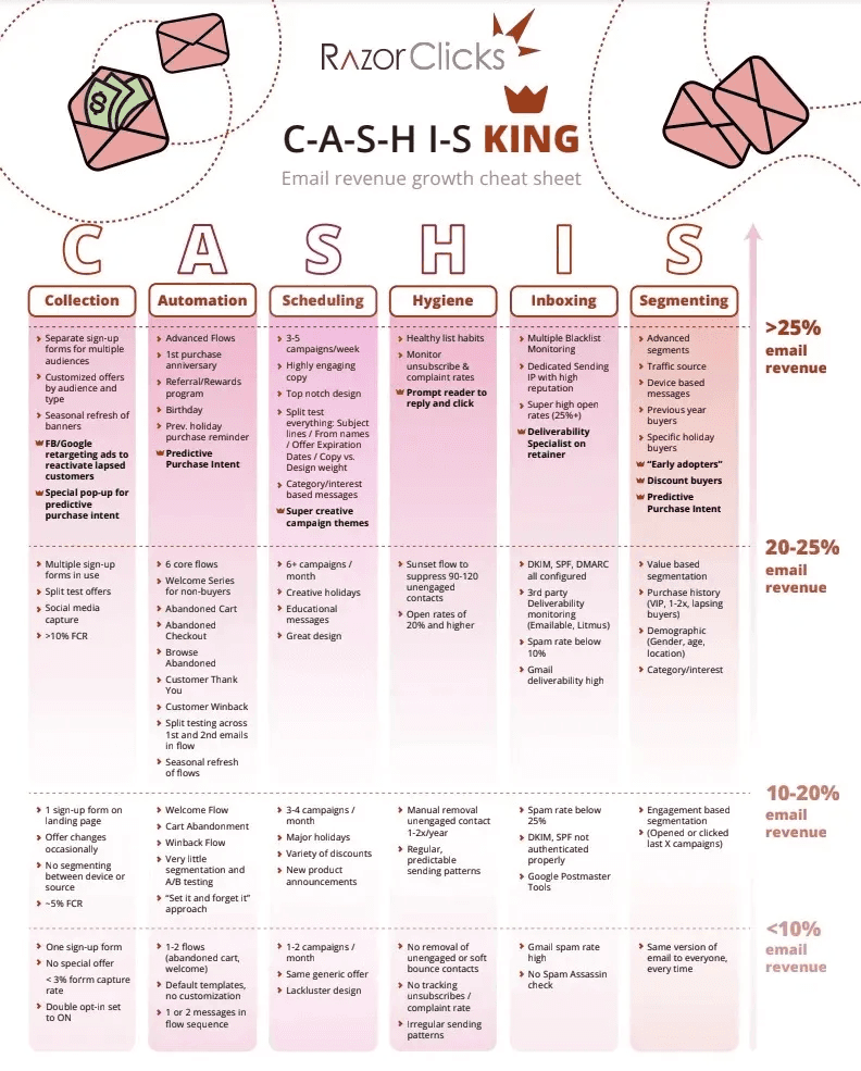 After completing your email audit, you should embark on a structured journey. We've formulated a mnemonic, "Cash is King," to encapsulate the essential steps for effectively implementing your email audit recommendations.