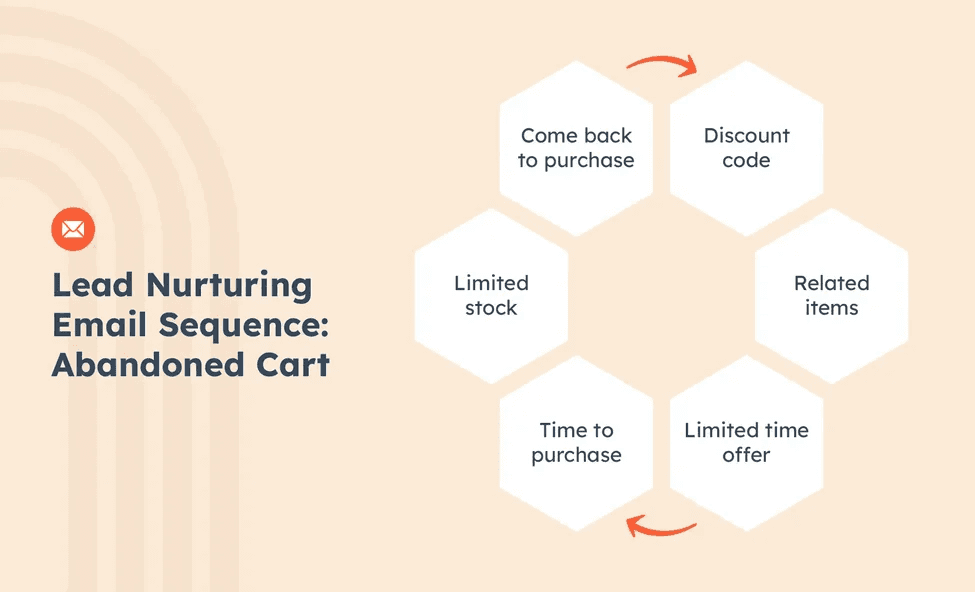 A lead-nurturing email sequence is a series of emails that are automatically triggered when the lead takes a specific action. For example, once a customer adds an item to their cart, a lead-nurturing email sequence could include a purchase reminder, a limited-time offer, or a list of similar products they may like.